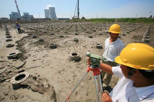 圖為第一標段施工人員對8400顆基樁進行標高測量。
