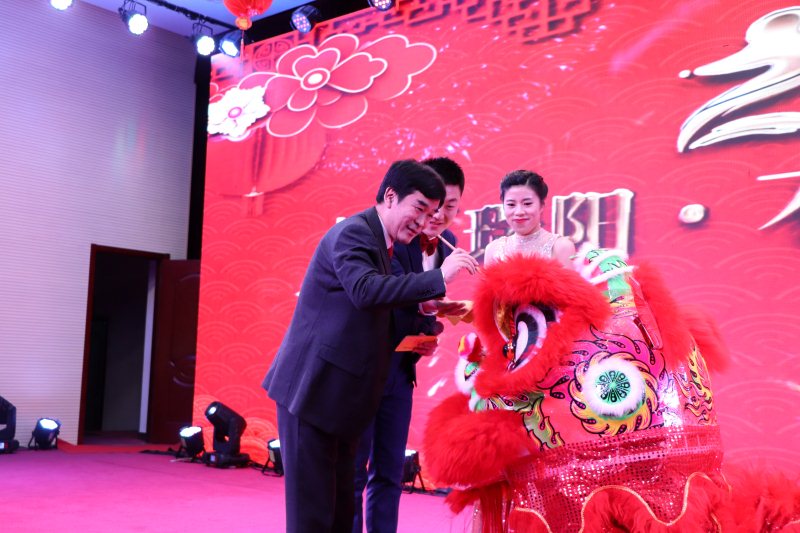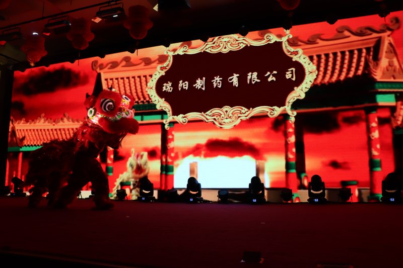 輾轉(zhuǎn)騰挪雄獅舞財(cái)運(yùn),翻飛跳躍新春送祥瑞。在苗董為雄獅點(diǎn)睛之后,一頭充滿活力的紅色雄獅在舞臺(tái)上騰挪跳躍,寓意著瑞陽一枝獨(dú)秀,配合著大屏幕不斷轉(zhuǎn)換的場(chǎng)景,粉針事業(yè)部張希鵬、尹玉亮為大家奉上了華麗壯觀、惟妙惟肖的演出《雄獅助興》